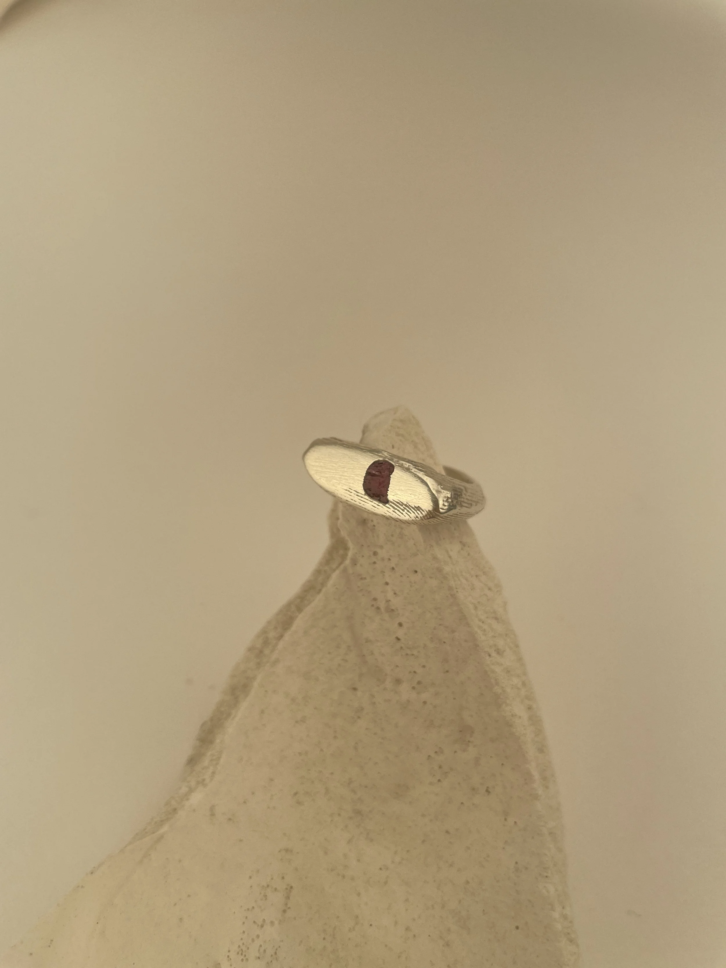 This is a one-of-a-kind statement ring hand crafted in Jayne’s Margate workshop. Inspired by the natural world and made with love. ‘Jammiest bits of Jam’ this phrase was popular in the 1800’s and means absolute, perfect young females. The ‘Jammiest bits of Jam’ collection is for the lovers of warm colours: pinks, reds and purples, exploring bold cuttlefish lines in keeping with a playful feel. This is an ever growing collection which means new pieces are being added all the time. This item is one of a kind and ready to wear, if you wish to order something similar in your own size please contact us via email to discuss options.